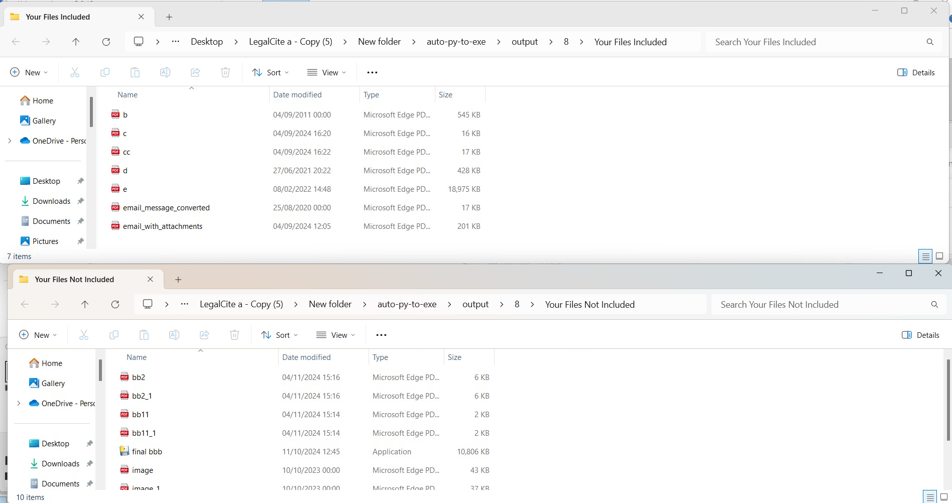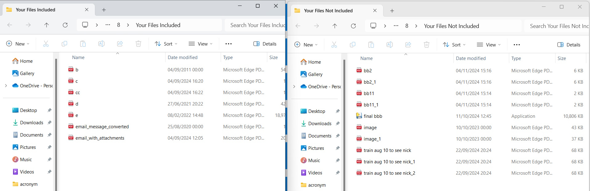 This option opens two windows "Your Files Included" & "Your Files Not Included".